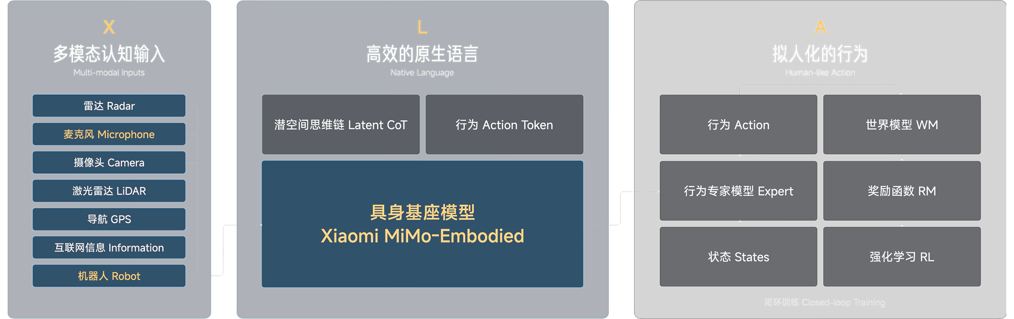 小米 XLA 架构基于自研 Xiaomi MiMo-Embodied 具身基座模型打造,是行业 VLA 的扩展。